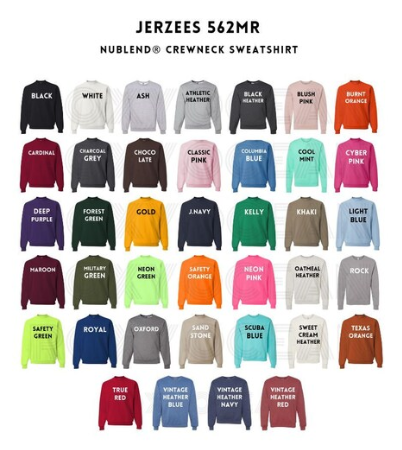 Available on Jerzees brand sweatshirts. Be sure to include your preferred color in the “Order Special Instructions” box at checkout so we can make it just right for you! 🎨✨